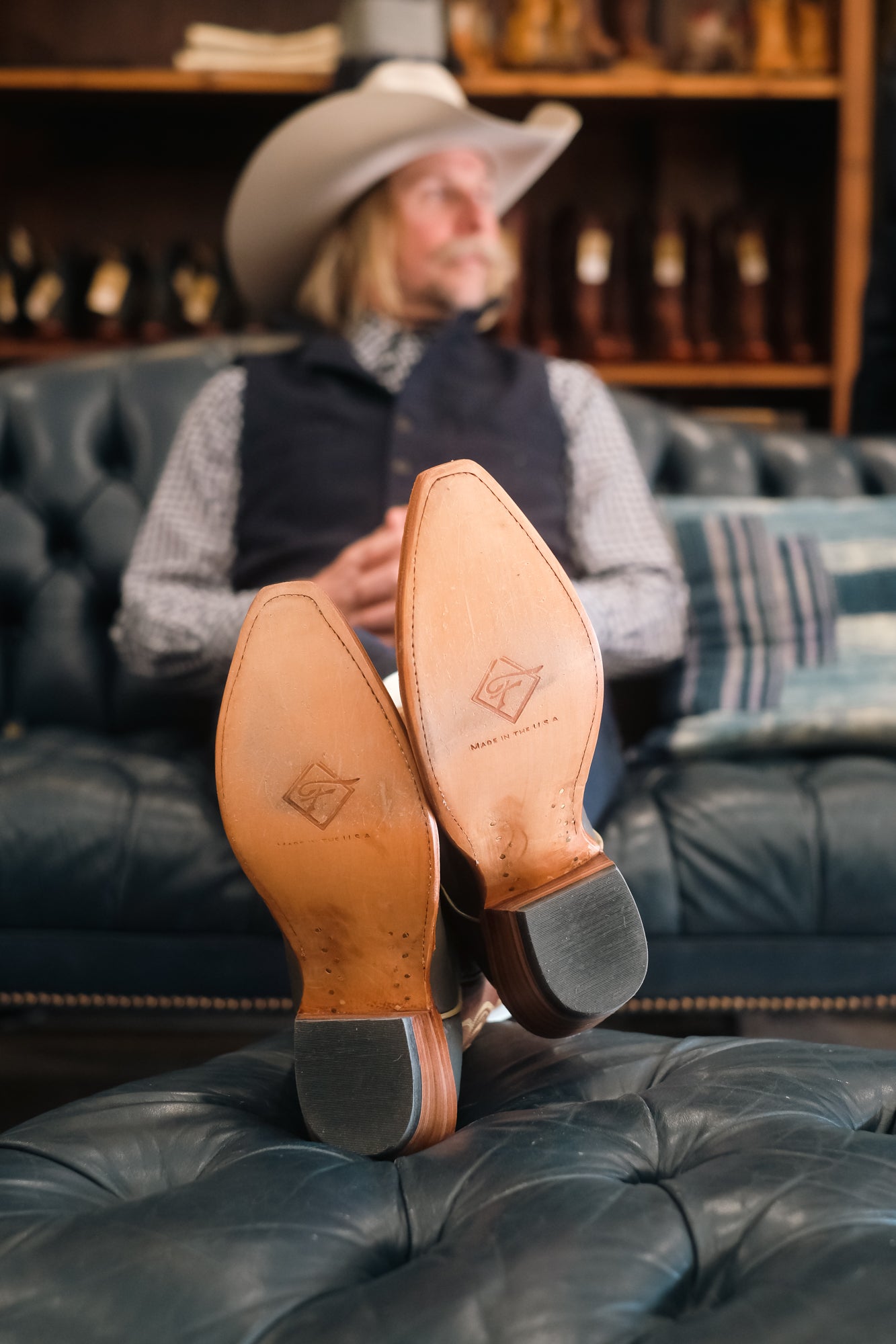 Hand-tooled one at a time by Clint Wilkinson in Denton, Texas, this Western leather desk mat brings heritage craftsmanship to your workspace. Each piece is drawn, carved, and dyed by hand using premium vegetable-tanned leather, then stitched and lined for lasting structure. No two are alike—each mat carries its own tooling pattern, patina, and character. A true heirloom piece that elevates any desk with warmth, texture, and timeless Western style.